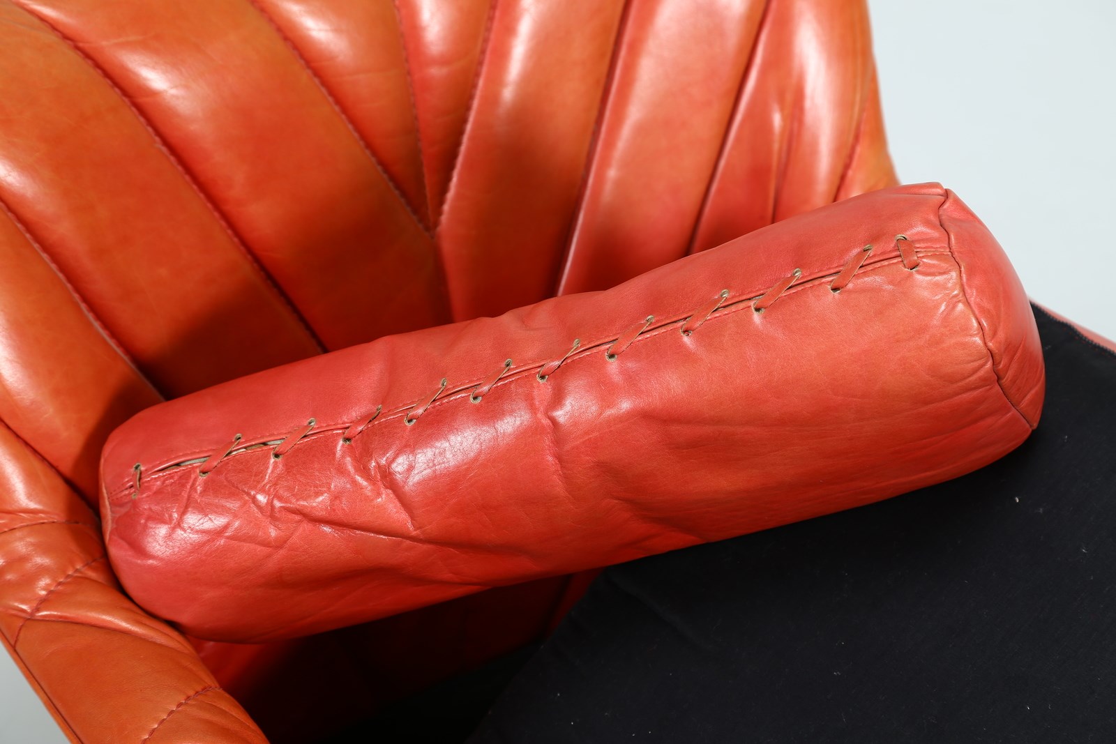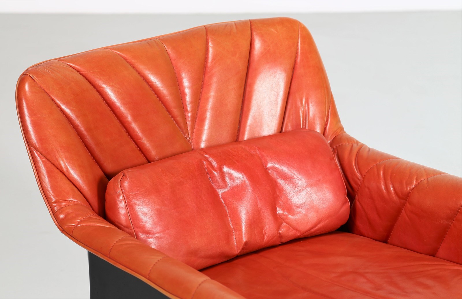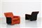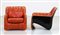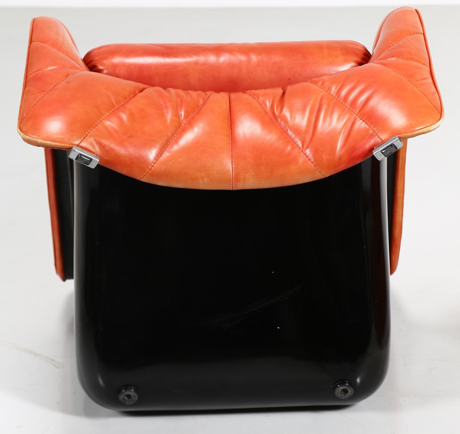 BARTOLI CARLO (n. 1931) Coppia di poltroncine. Pelle e fiberglass.. Cm 70,00 x 68,00 x 80,00. Coppia di poltroncine modello "Bicia", per Arflex, anni 70. Data del disegno: 1969. Struttura in fiberglass nera e rivestimento in pelle. Pubblicazioni: Domus, n. 483, febbraio 1970, p. 90
