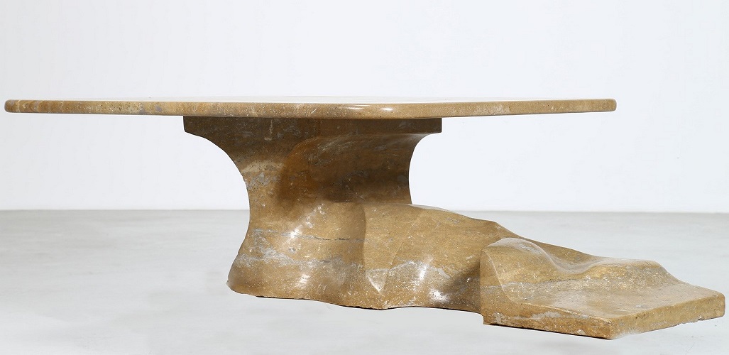 OPERA ITALIANA Tavolo. Marmo. Cm 145,00 x 43,00 x 90,00. Tavolo scultura in marmo, anni 70.