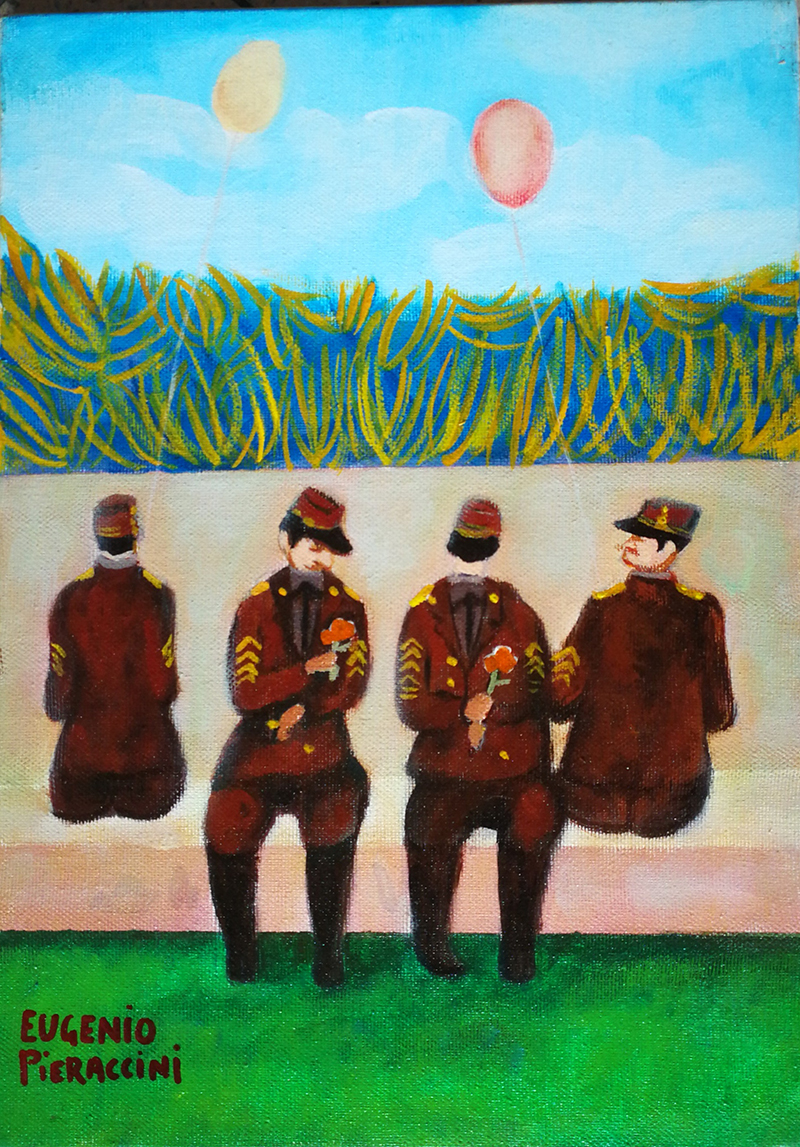 Eugenio Pieraccini, Militari. Olio su tela, Dimensioni: 35cm x25cm. Certificazione: Firmato fronte opera