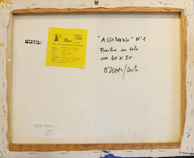 Angela Occhipinti, Assonanze N1, 1995. Acrilico su tela, Dimensioni: 40cm x50cm. Certificazione: Firmato e datato retro opera