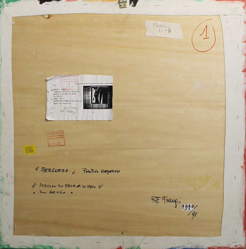 Reale Franco Frangi, Percorso Positivo / Negativo n 1, 1990/1991. Acrilico su tela riportata su legno, Dimensioni: 60cm x61cm. Certificazione: Timbro Arte Struktura Lonato su retro opera