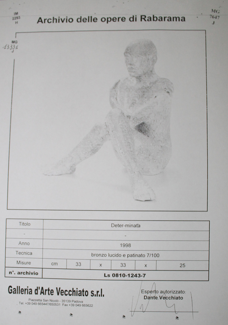 Rabarama, Deter-minata, 1998. Bronzo lucido e patinato n 7 di 100, Dimensioni: 25cm x33cm. Certificazione: Autentica Dante Vecchiato Srl numero archivio LS0810-1243-7