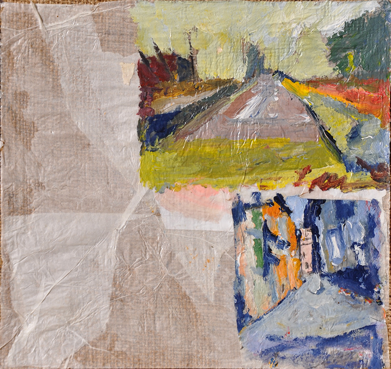 Tonino Gottarelli, Due in uno, 1999. Acrilico e collage su carta velina intelata, Dimensioni: 20cm x25cm. Certificazione: Certificato di autenticità
