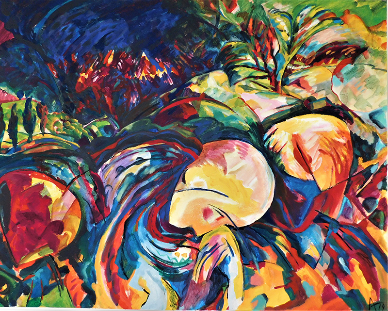 Alessio Tanfoglio, Il riposo di Anchise, 2019. Acrilico su tela, Dimensioni: 80cm x100cm. Certificazione: Autentica su foto dell'artista
