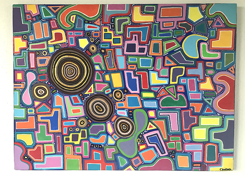 Chiara Gregorin, Fantasie in blu, 2010. Acrilico su tela, Dimensioni: 60cm x80cm. Certificazione: Autentica su foto dell'artista