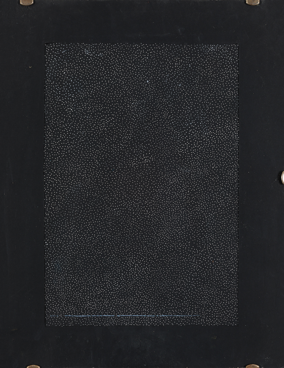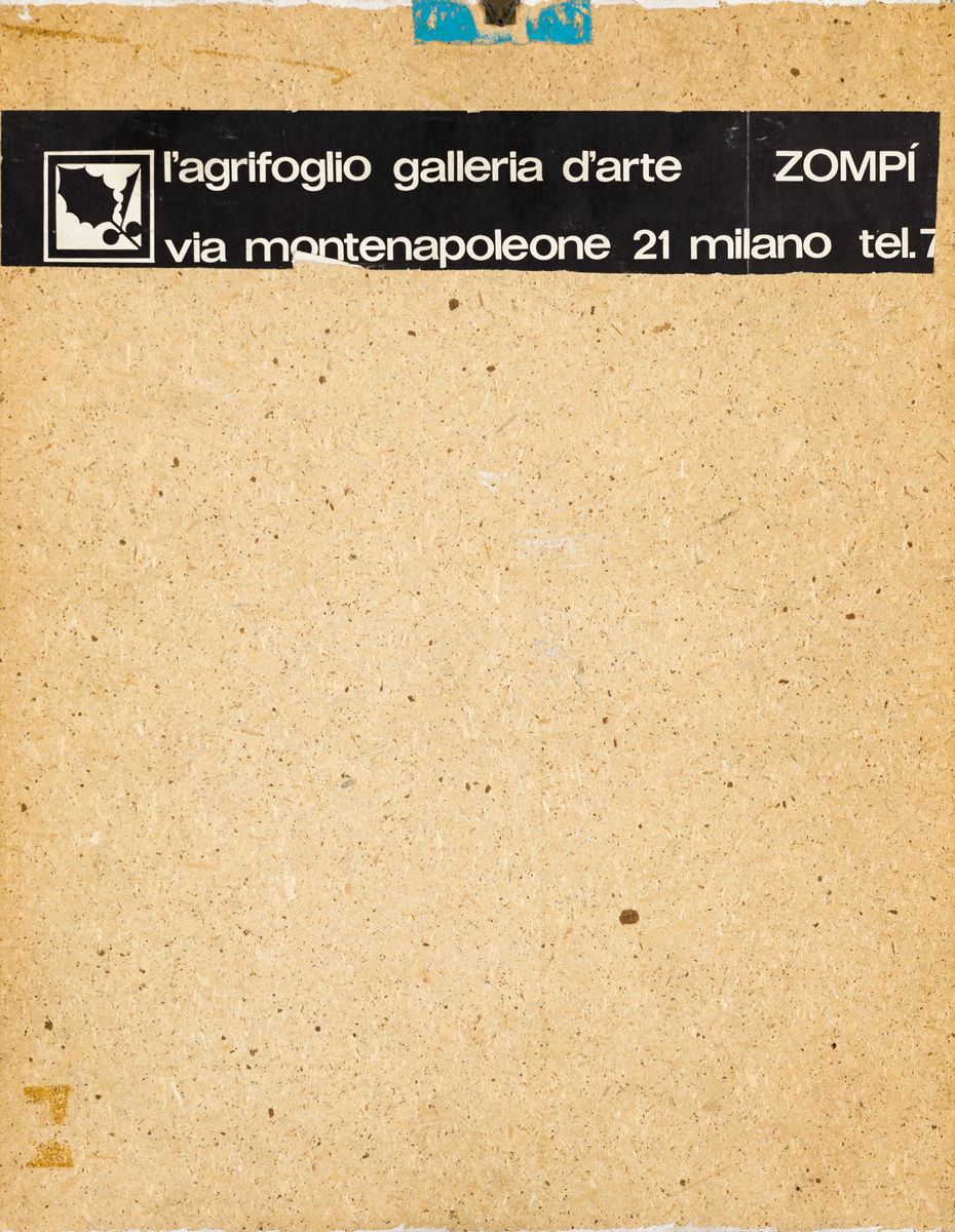 Etichetta dell'esposizione tenutasi presso l'Agrifoglio galleria d'arte (MI) al retro della tavola protettiva