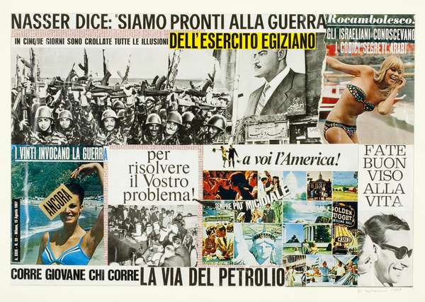 Eugenio Miccini La via del petrolio, 1967 collage su cartoncino, cm. 50x70...