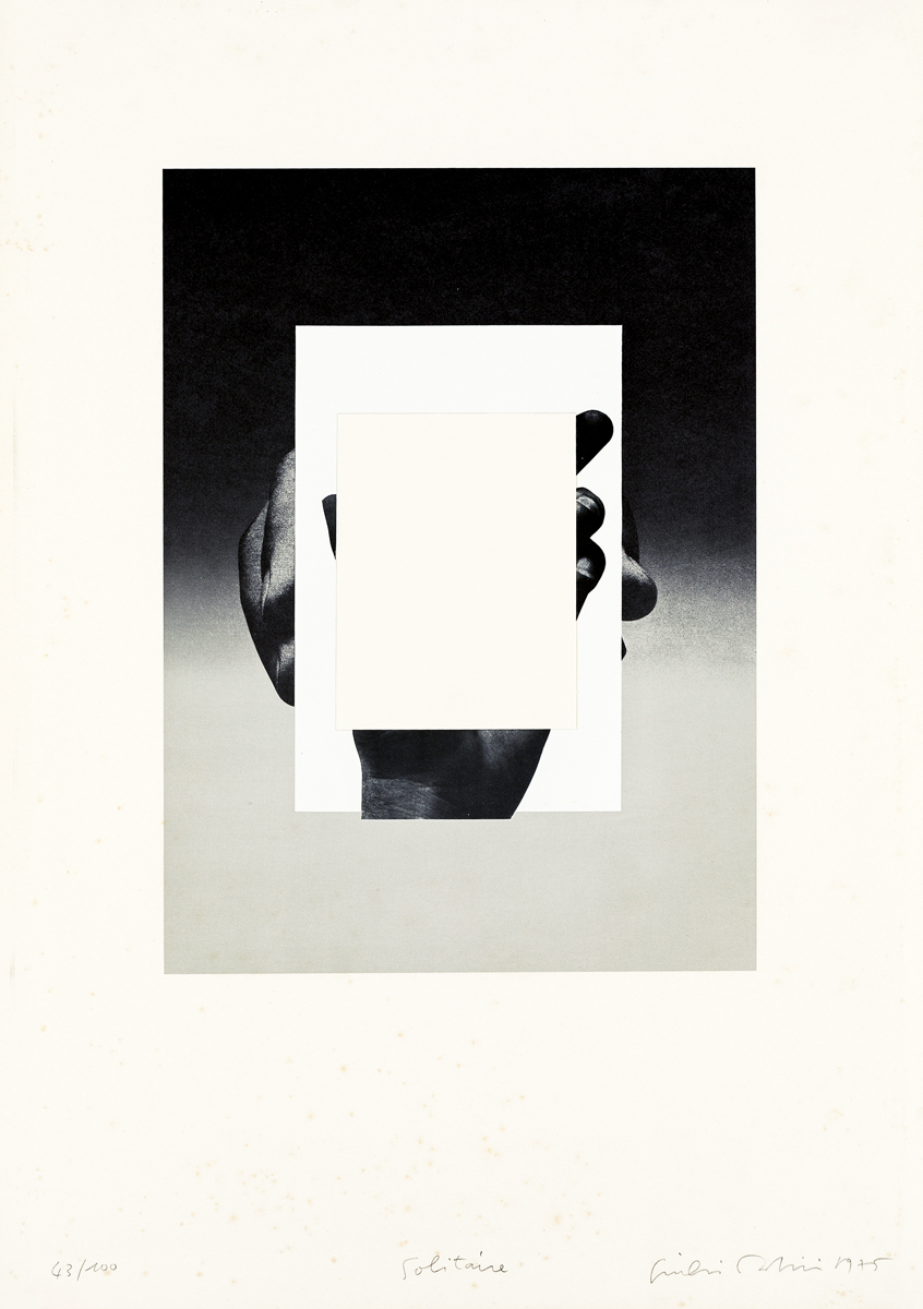 Opera originariamente contenuta all'interno della cartella di opere grafiche edita in occasione dell'esposizione 'Fotomedia' tenutasi al Museum am Ostwall di Dortmund nel 1974 e alla Rotonda della Besana di Milano nel 1975. La collettiva, curata da Daniela Palazzoli, vedeva la partecipazione di giovani artisti italiani che, attraverso la fotografia e il riporto su tela, si interrogavano sul "fare arte" in un mondo già fortemente segnato da cinema e televisione, serbatoi di nuove forme di comunicazione