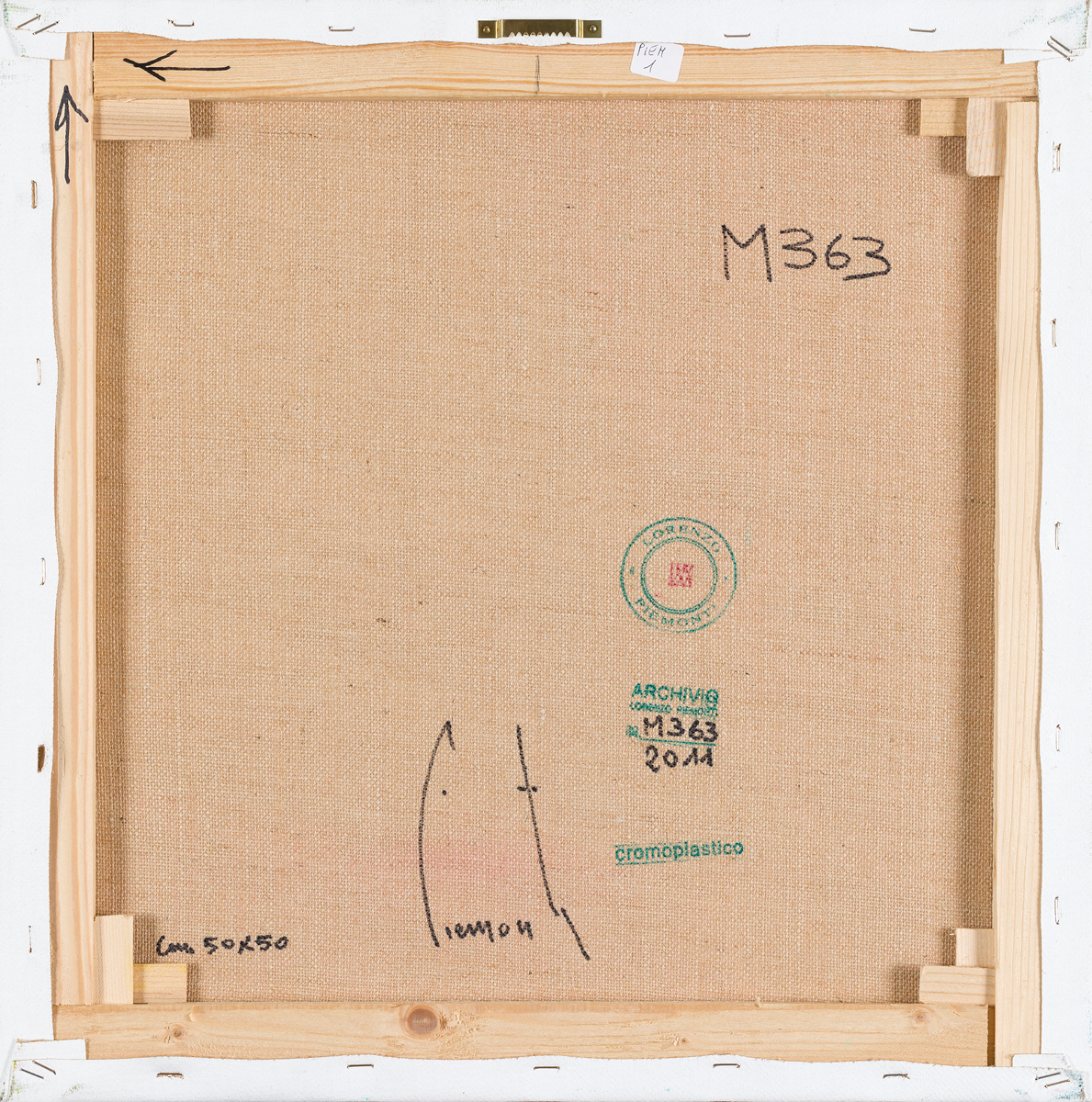 Firma, titolo, timbro dell'Artista e timbro dell'Archivio Lorenzo Piemonti con numero di archiviazione al retro