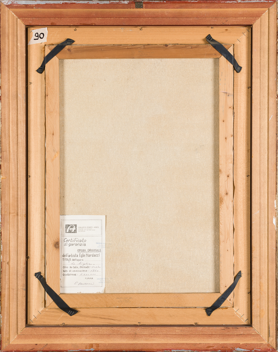 Certificato di garanzia con firma dell'Artista e timbri della Galleria d'Arte Aries al retro