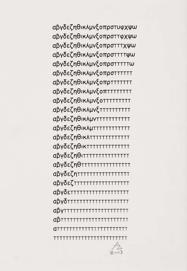 Demostene Agrafiotis Alfabeti, 2003 scrittura al computer, cm. 29x21 Firma in...