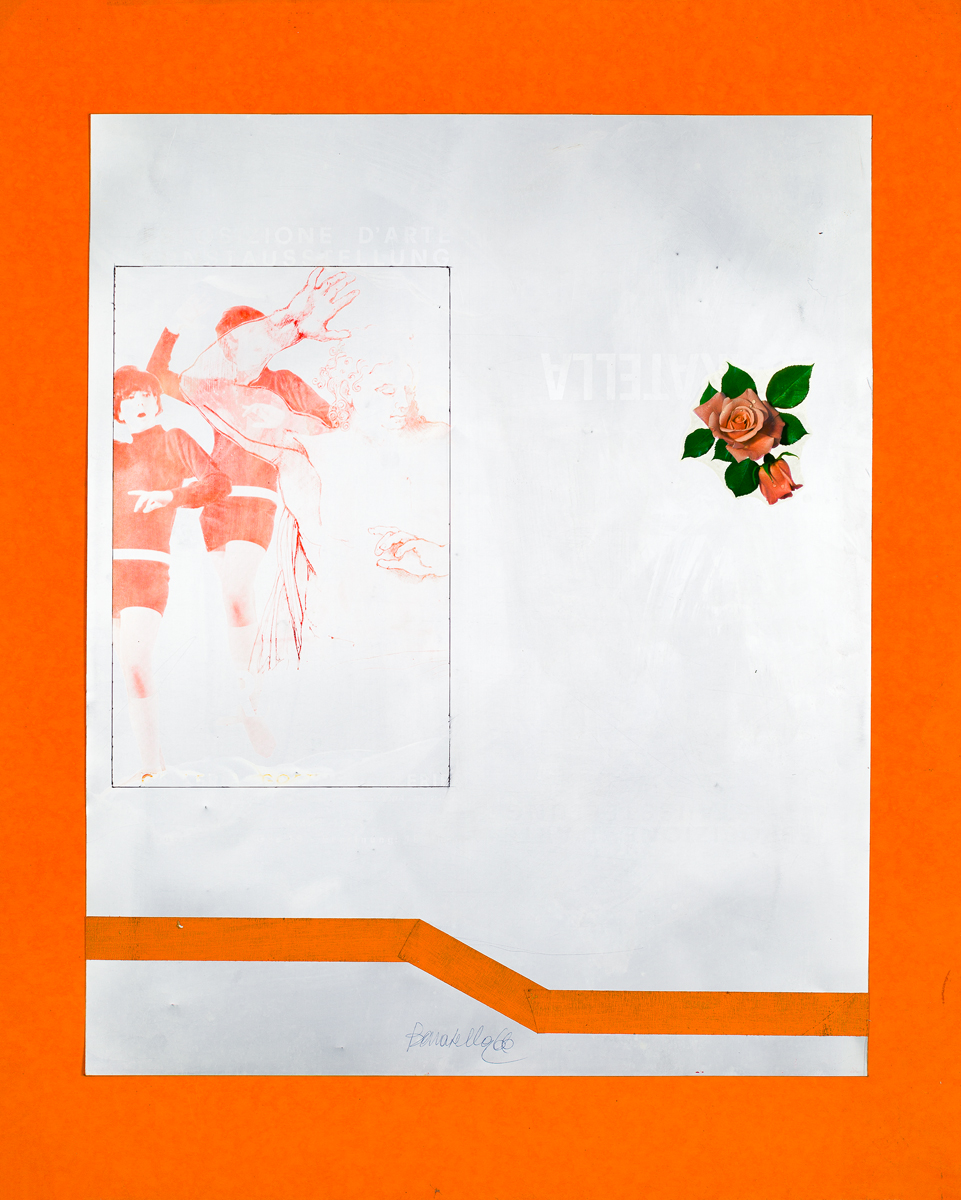 Locandina dell'esposizione personale tenutasi presso la Galleria Goethe, Bolzano, 1966, eseguita su cartoncino argentato e recante interventi a collage