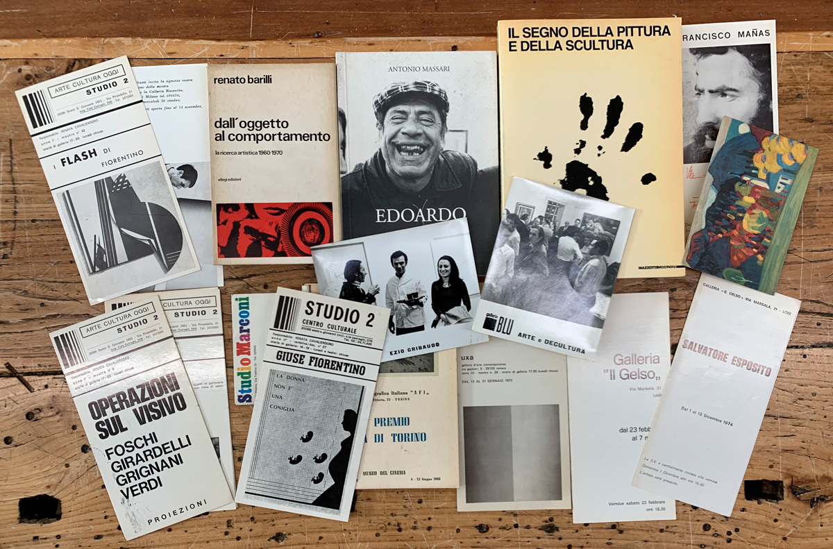 Si allegano inoltre numerosi inviti di storiche esposizioni degli artisti Arman, Turi Simeti, Giuliano Barbanti, Fausta Squatriti, Betty Danon, Giuse Fiorentino, Eliana Lunetti, Ezio Gribaudo, Armando Ilacqua e altri