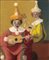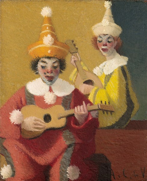 Antonio Calderara "Due pagliacci" 1945 olio su tavola cm 16x13 Siglato in basso