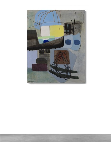 Giuseppe Santomaso "Alba fra i tralicci di uno scalo" 1952 olio su tela cm 150x1