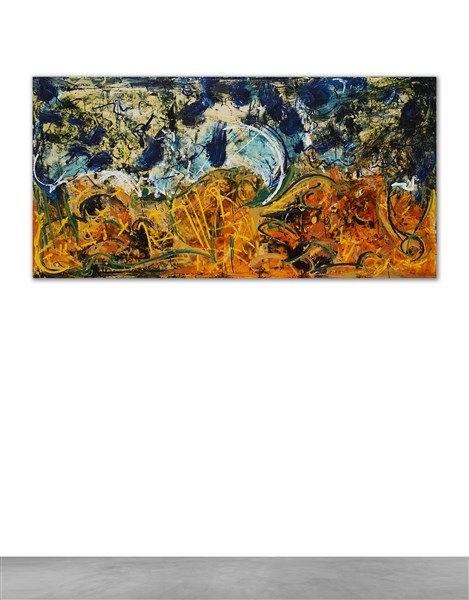 Mario Schifano "Orizzonte" 1987 smalto e acrilico su tela cm 100x200 Firmato e t