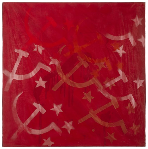 Franco Angeli "I° Maggio" 1963-65 olio e tecnica mista su tela con velatino cm 1