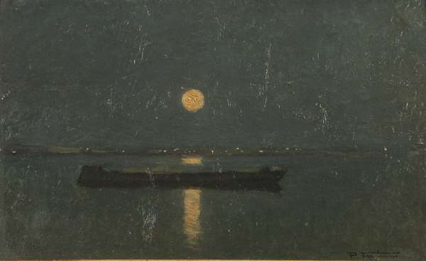 Pietro Fragiacomo Notturno olio su cartone rigido, cm. 19x31 Firma in basso a dx