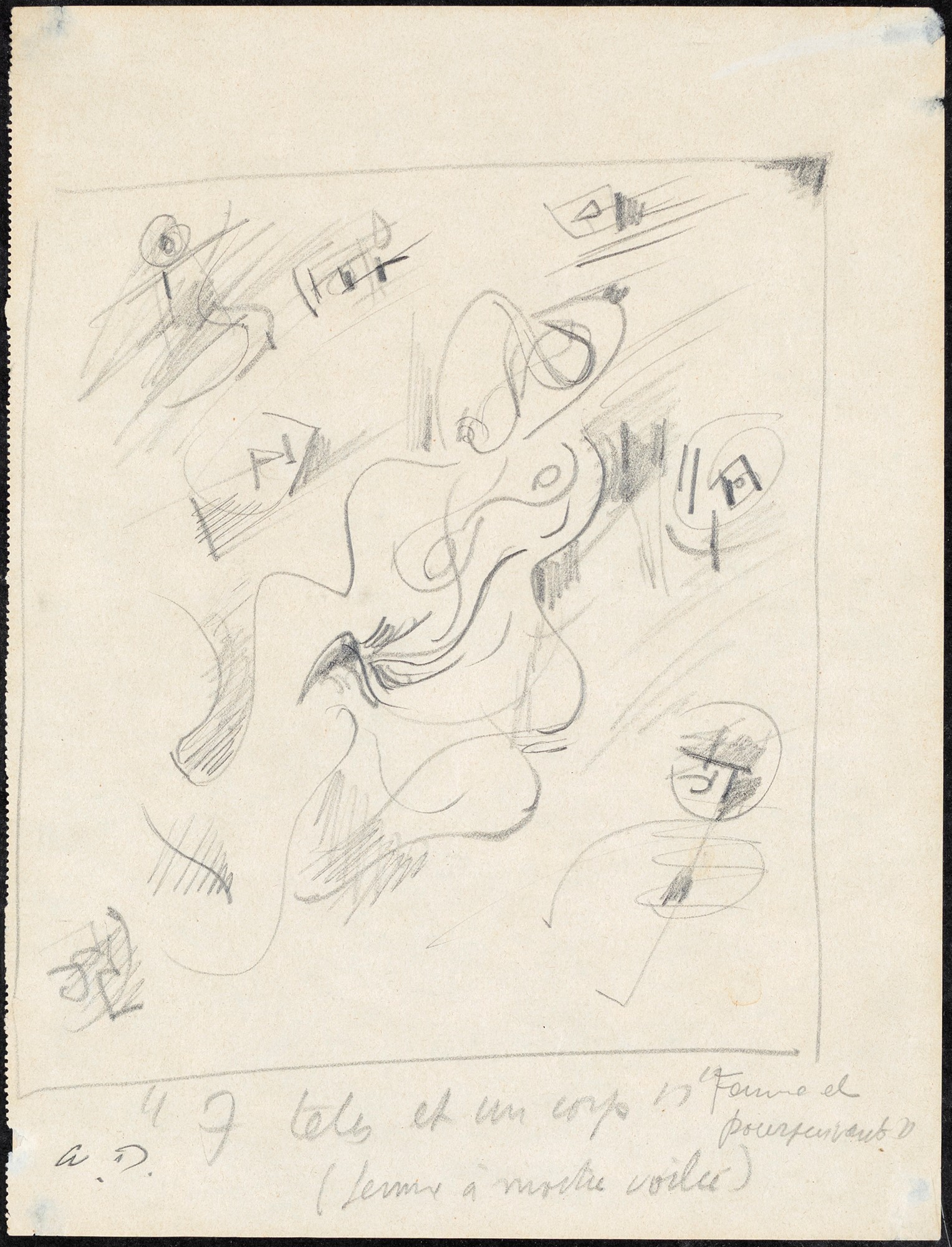 André Masson Femme a maitre voilée - Firma in basso a sinistra: A. M. - 27x20 - Matita su carta