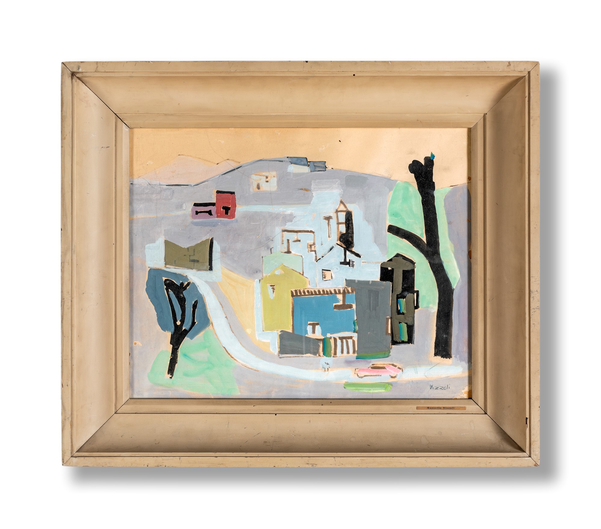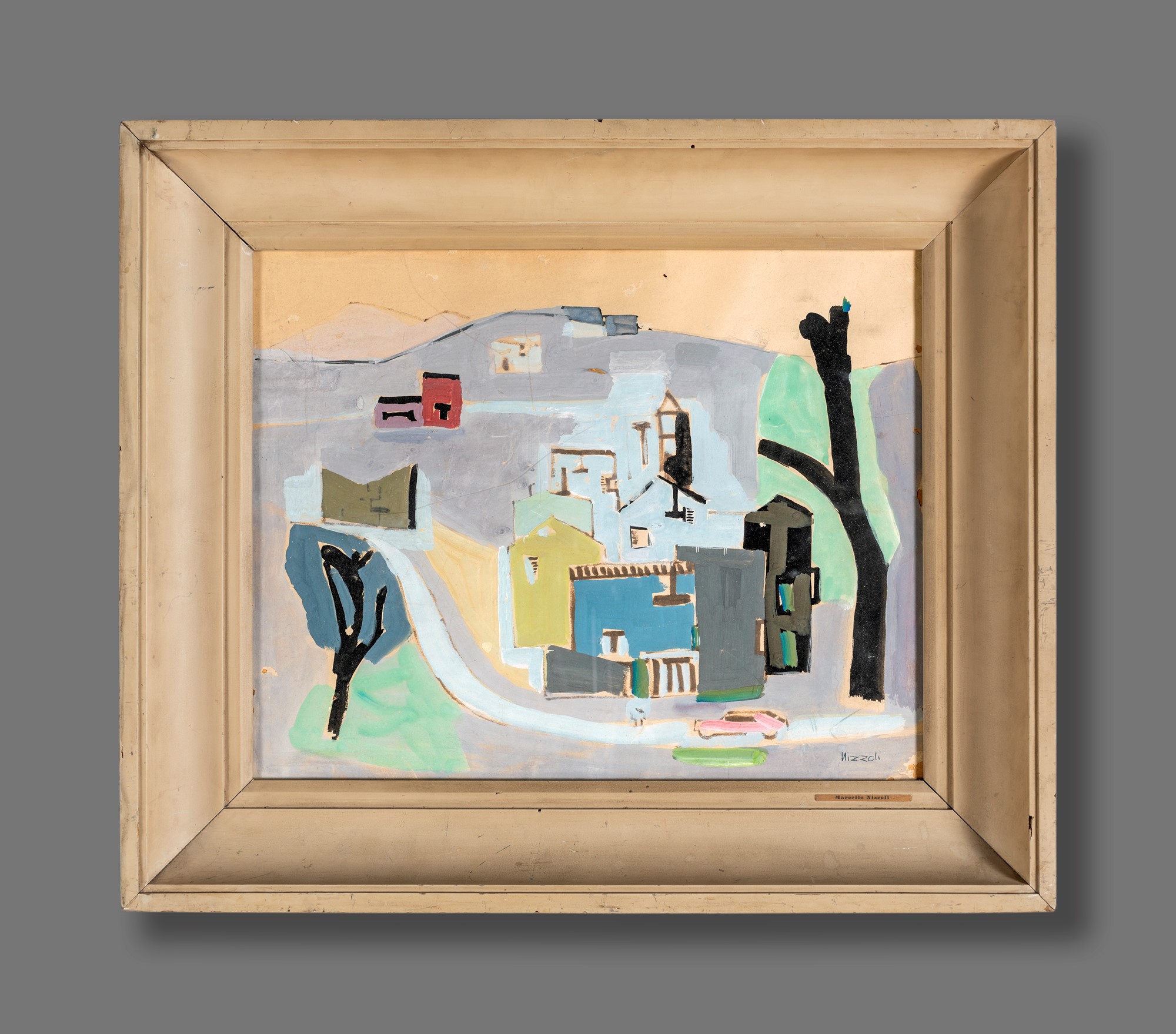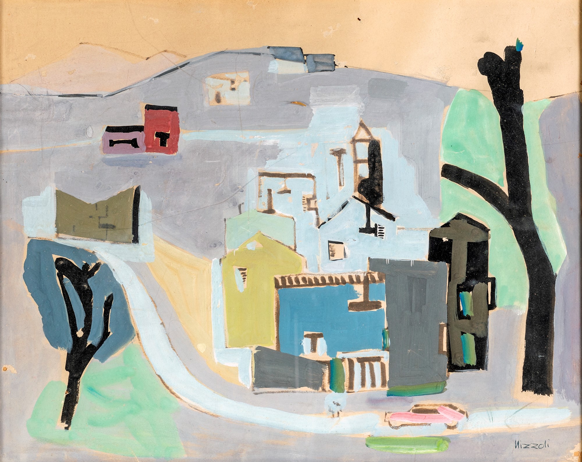 Marcello Nizzoli Paesaggio - Firma sul fronte "Nizzoli". Al verso reca etichetta dell'autore. - 30x3 - Tempera su cartone - 1924-25