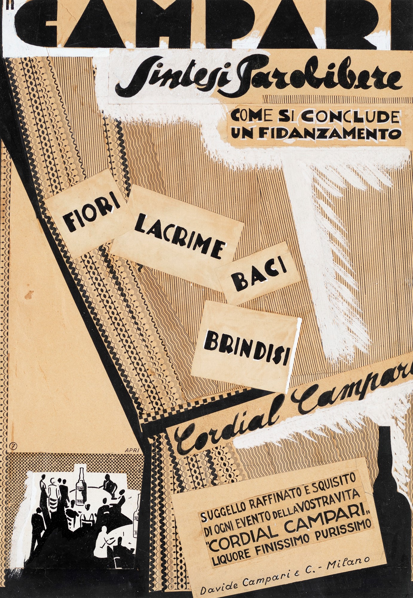 Lotto 109 | Marcello Nizzoli Campari, Sintesi Parolibere. Come si conclude un fidanzamento "Fiori lacrime baci brindisi"