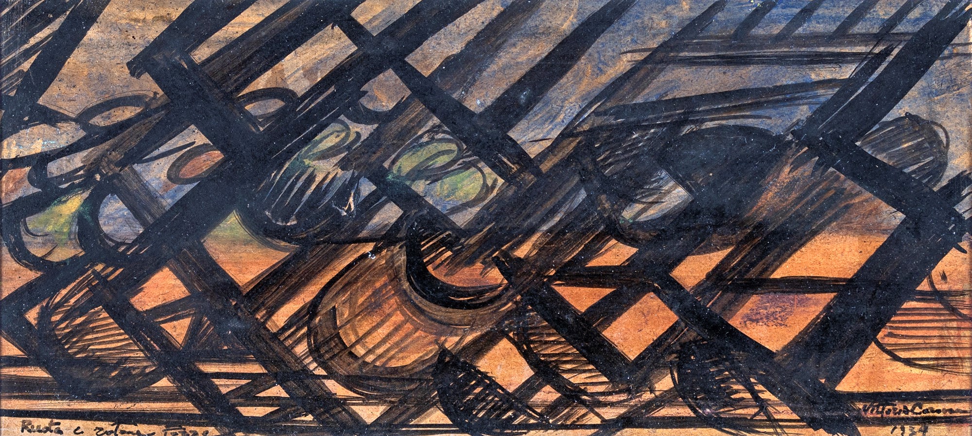 Firma e data in basso a destra: Vittorio Corona 1934 - 15,2x33 - China, pastello e tempera su carta - 1934