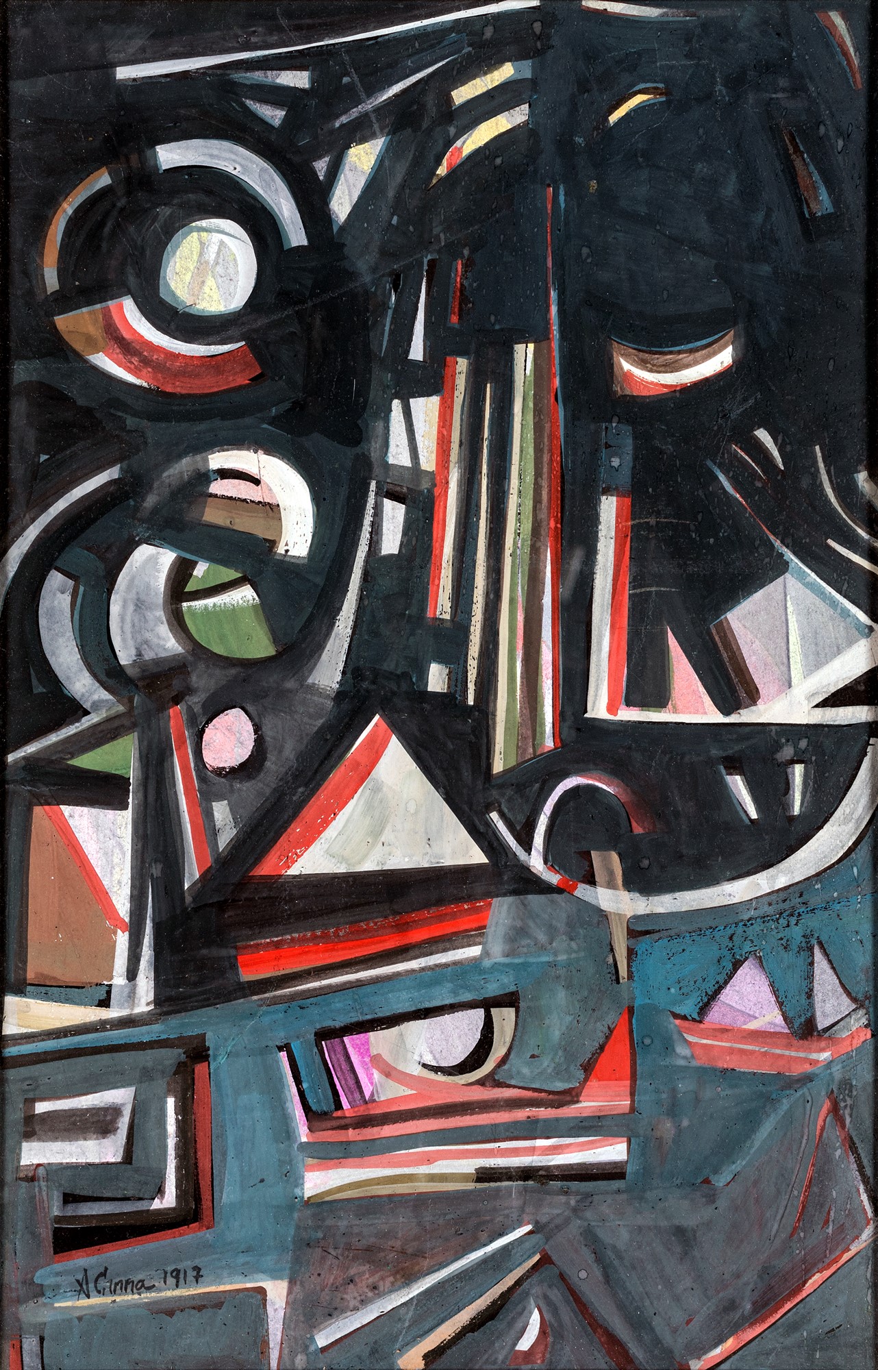 Arnaldo Ginna Composizione astratta - Firma e data sul fronte "A.Ginna 1917". - 44x28,4 - Tempera su cartoncino - 1917