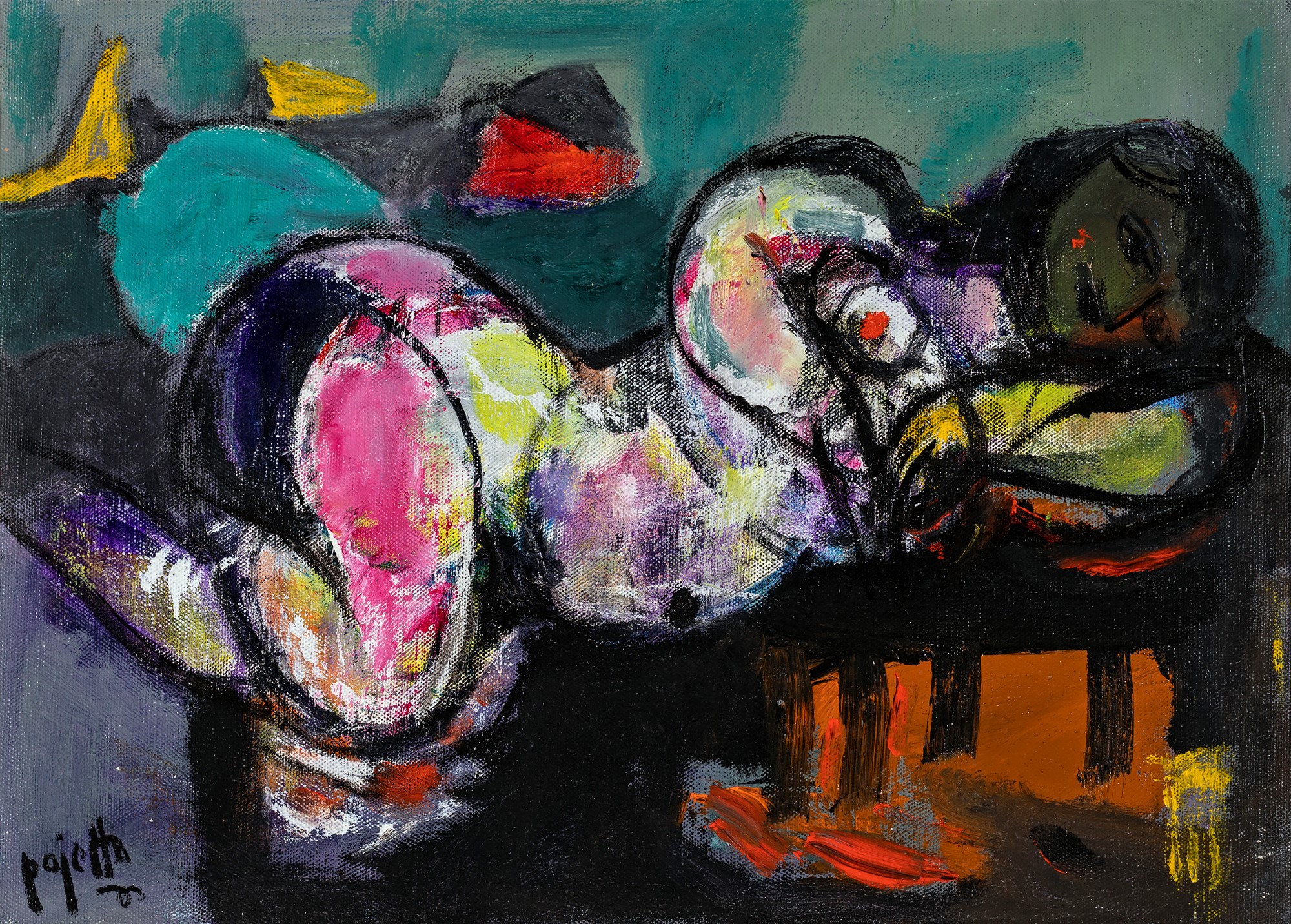 GUIDO PAJETTA Nuda nel sonno - Firma sul fronte in basso a sinistra "Pajetta". - 50x70 - Acrilico su tela - 1978
