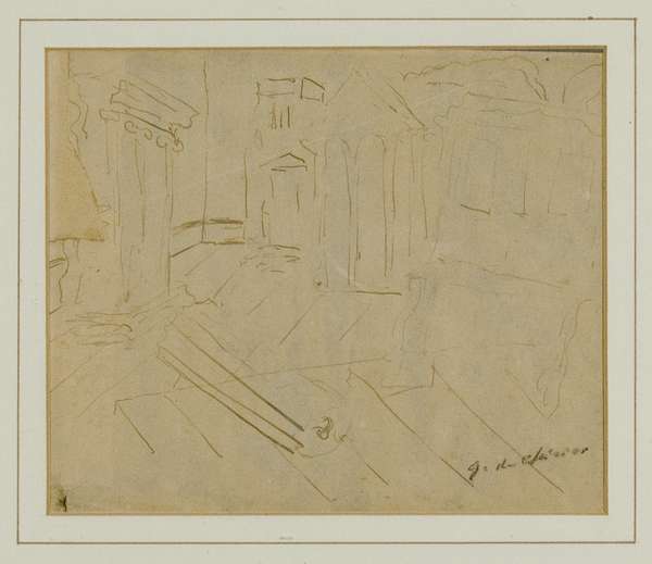 Giorgio de Chirico Templi, 1920 ca inchiostro su carta, cm. 17x22 Firma in...