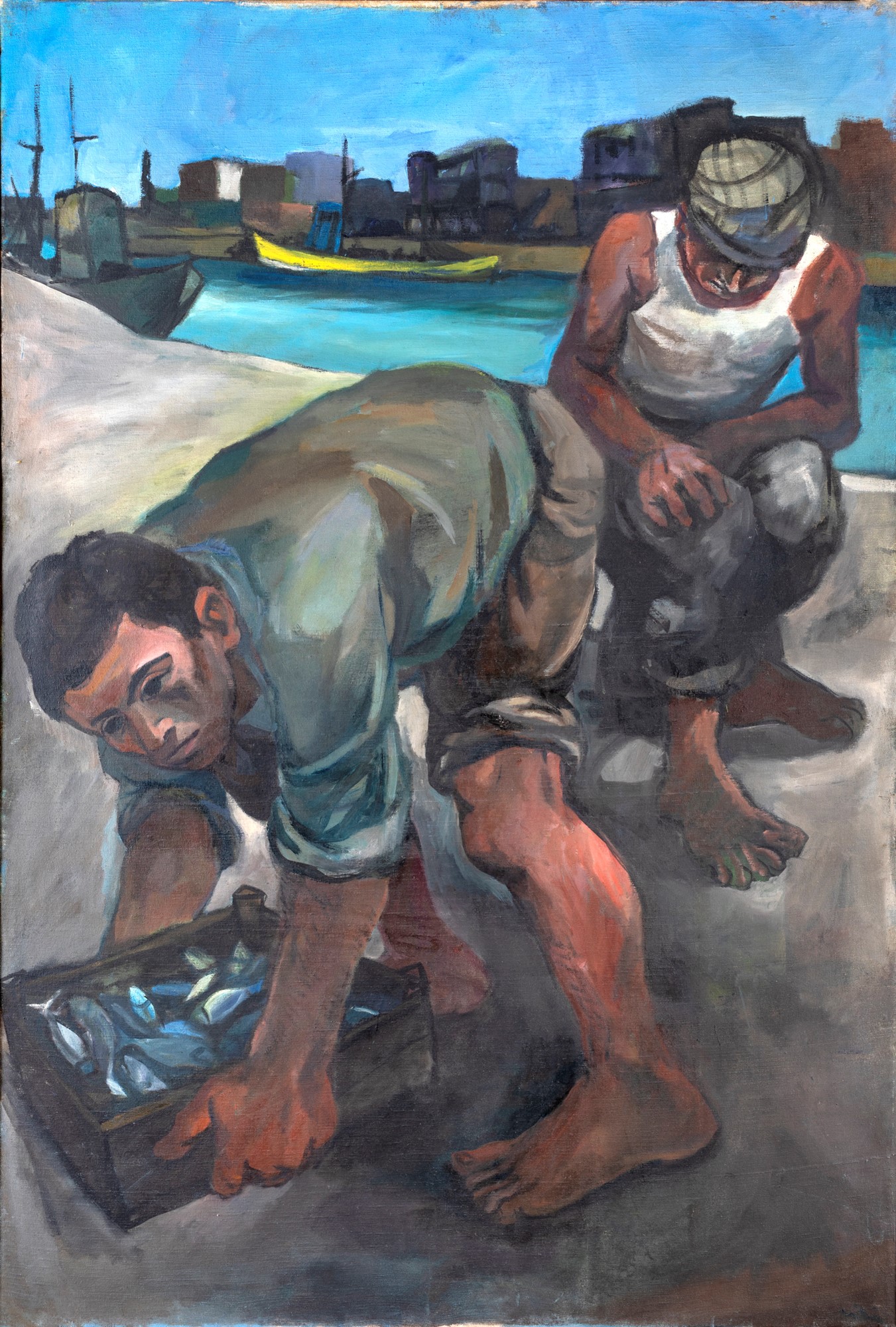 Valeriano Ciai Pescatori a Fiumicino - olio su tela - cm 133x90 - olio su tela