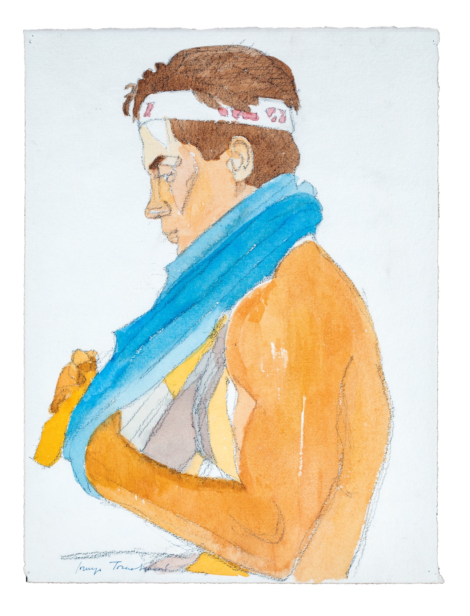 Lorenzo Tornabuoni Il Pugile - Firma sul fronte "Lorenzo Tornabuoni" - 40x30 - Matita e acquarello su carta