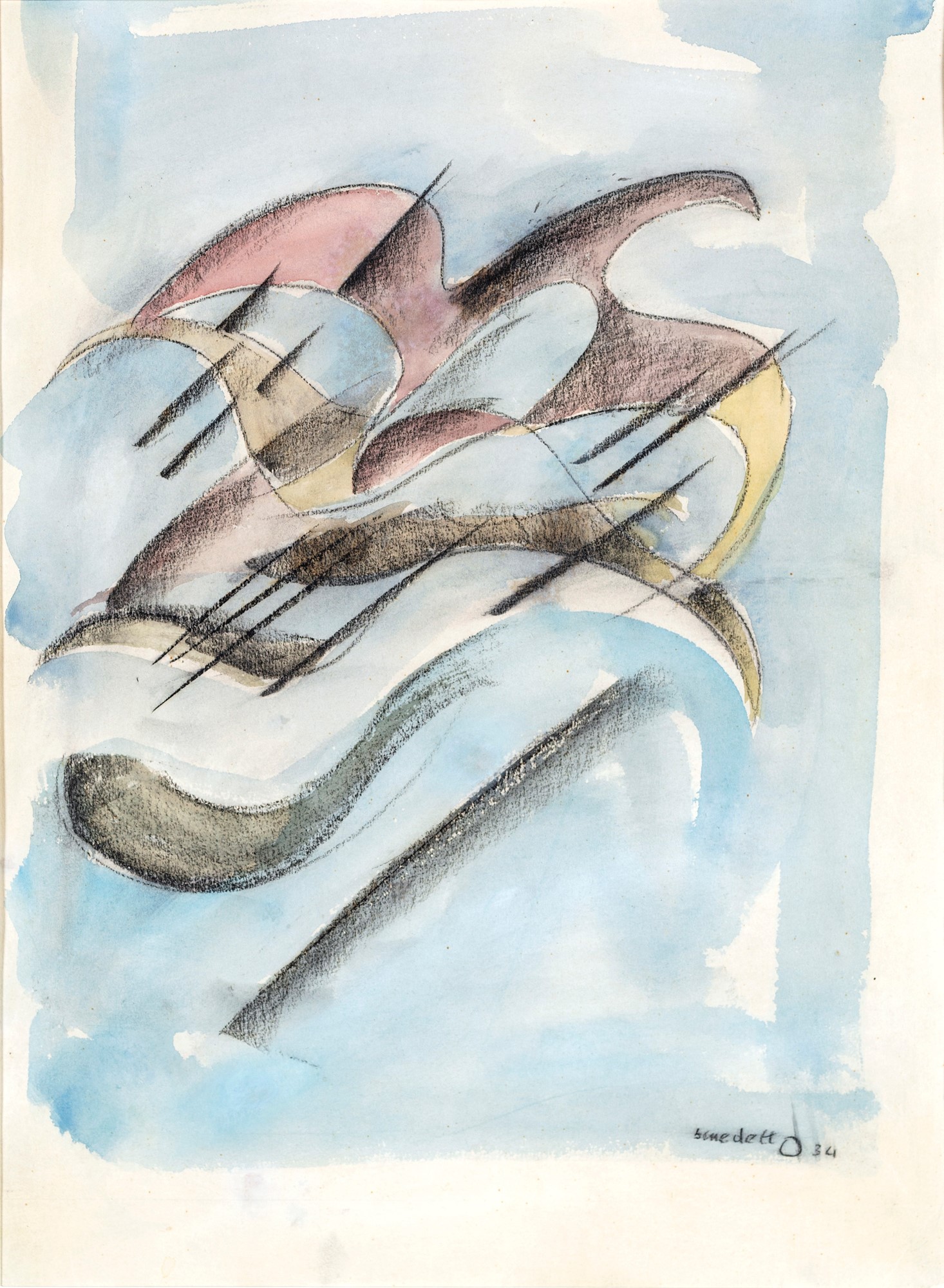 Enzo Benedetto Il Volo - Firma e data in basso a destra: Benedetto 34 - 47x35 - Carboncino e acquarello su carta - 1934