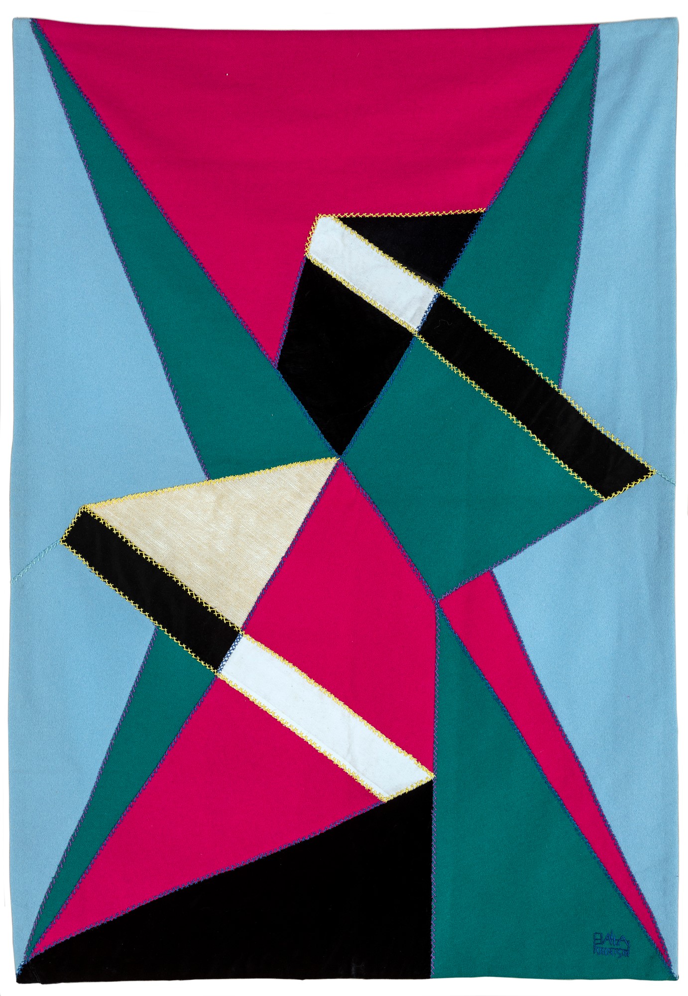 Giacomo e Luce Balla Forme Rumore - Opera eseguita da Luce Balla su disegno e progetto di Giacomo Balla del 1930.Firma ricamata: Balla Futurista - 102x71 - Tarsie di panni colorati - 1930-1975