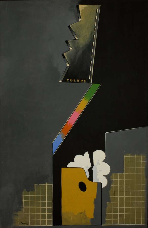 Fabrizio Plessi Pittorico, 1965 olio su tela, cm. 200x130 Firma in basso a sx Autentica dell'artista su foto