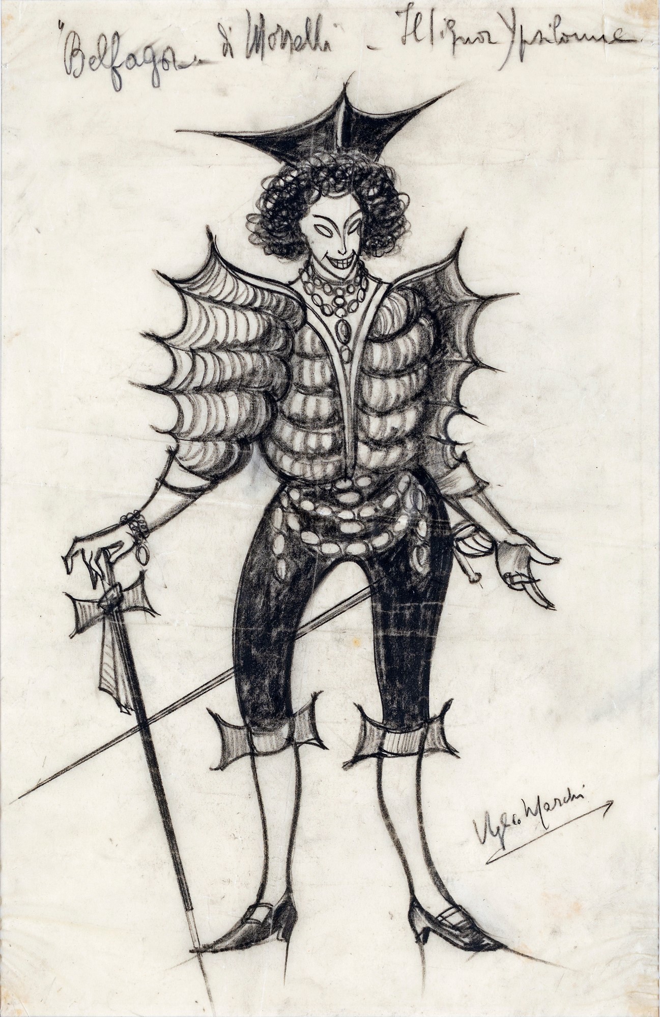 Virgilio Marchi Bozzetto di scena per Il Signor Ypsilone da "Belfagor" di Morselli - Firma in basso a destra: Virgilio Marchi
