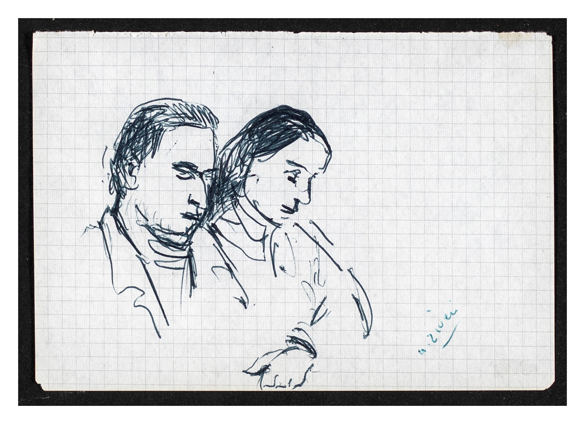 Alberto Ziveri Due figure - Firma sul fronte "A. Ziveri". - 15x10,5 - Inchiostro su carta a quadretti