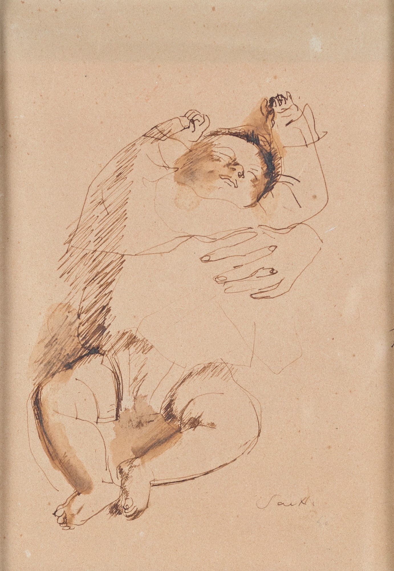 Bruno Saetti Studio di figura - Firma sul fronte "Saetti". Al verso reca di pugno dell'artista "Questo disegno è stato eseguito da me nel 1935, Bruno Saetti". - 24x17 - China e acquarello su carta - 1936