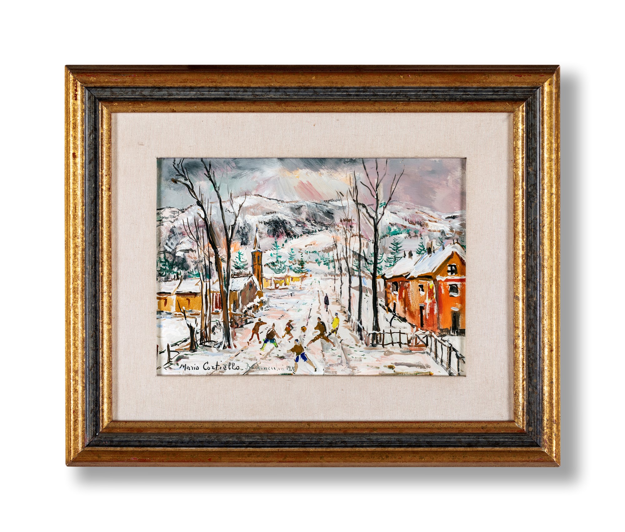 Mario Cortiello Bardonecchia - Firma, data e titolo in basso a sinistra "Mario Cortiello, Bardonecchia 1965" - cm 24x34 - Olio su cartone - 1965