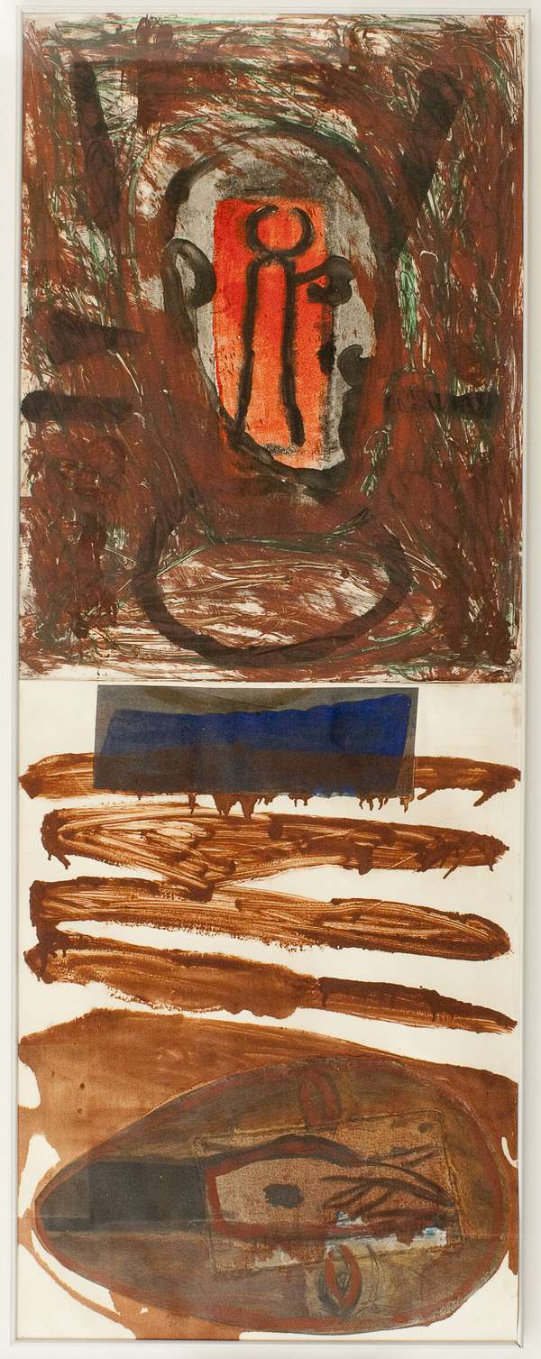 Mimmo Paladino Senza titolo, 1985 olio,collage e tecnica mista su cartone, cm. 130x49 Firma sul retro Autentica dell'artista su foto Provenienza Galleria Bernd Kluser,Monaco di Baviera