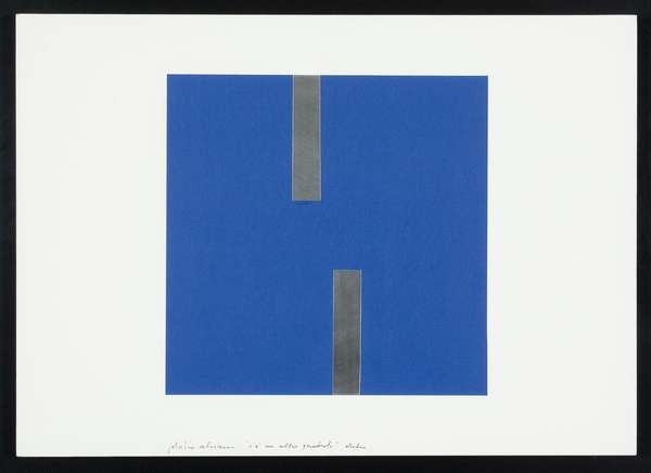 Getulio Alviani C'è un altro quadrato - studio, 1985 alluminio su cartoncino blu applicato su tavola, cm. 50x70 Firma in basso al centro Autentica dell'artista su foto