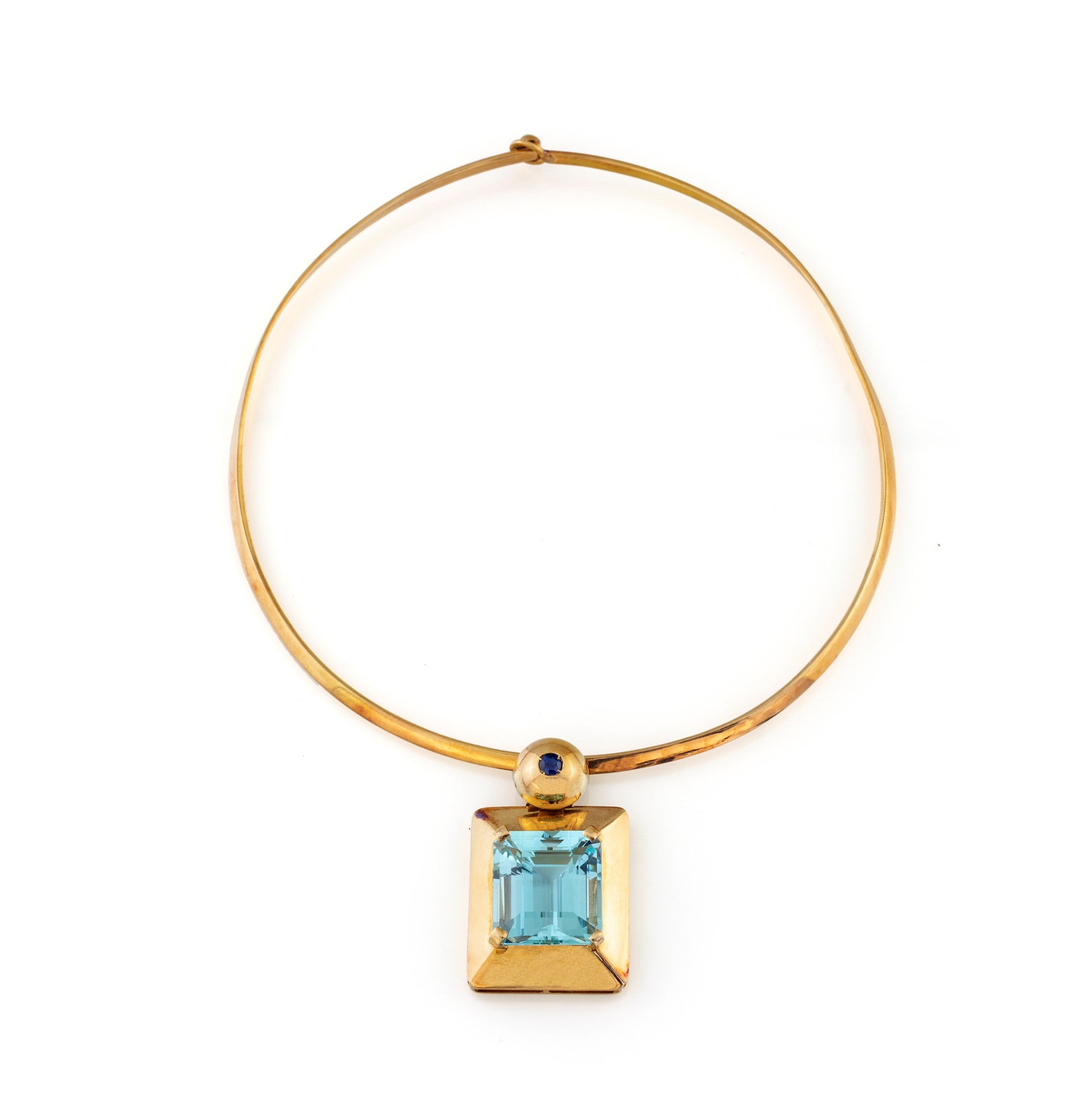 ROCCHI, COLLIER CON GRANDE ACQUAMARINA - ct 25 circa, ottimo colore e trasparenza, montatura in oro giallo 750/000 a filo quadro; g 39 circa