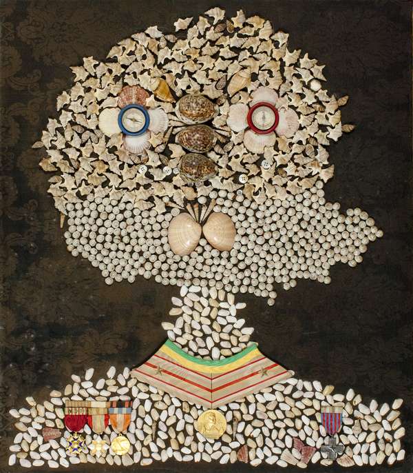 Enrico Baj Horatius Nelson Duke of Bronte multiplo realizzato con conchiglie e seta,es. 5/80, cm. 80x70 Firma sul retro Sul retro Certificato di Autenticità a cura dell'artista