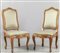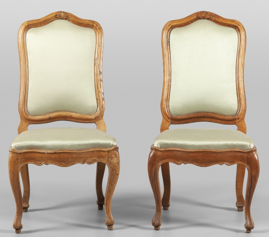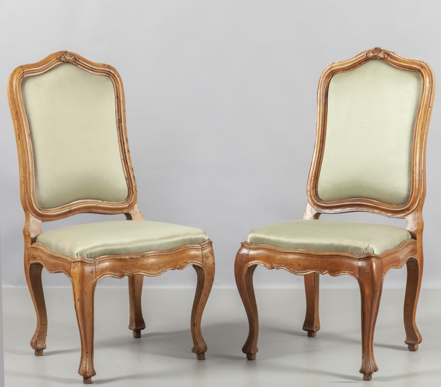 Coppia sedie Luigi XV in noce con schienale imbottito Genova metà sec.XVIII