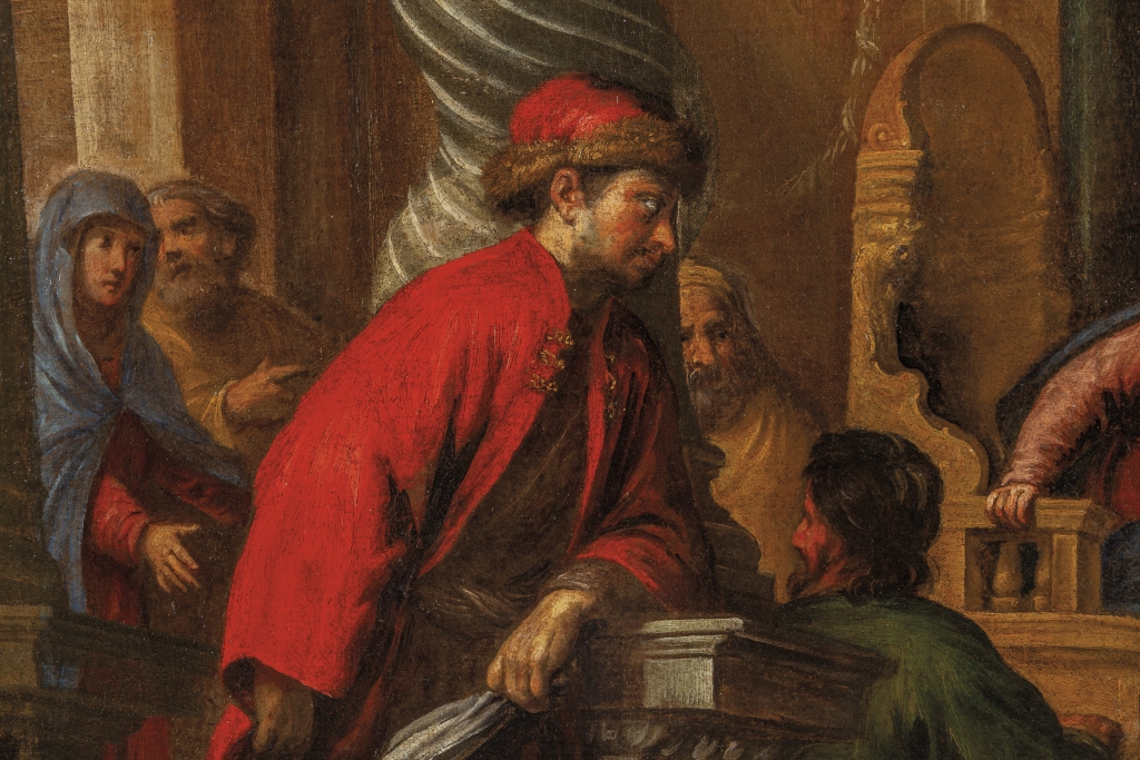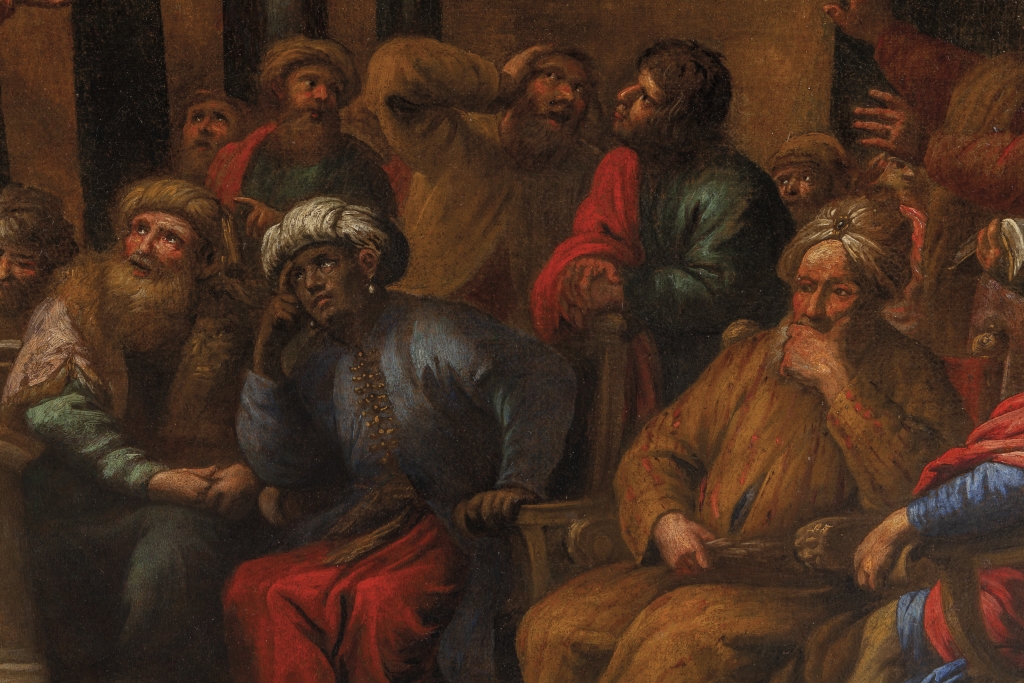 Un 'quadro traverso di disputa di Nostro Signore con li dottoi alto p. 3 e largo p.