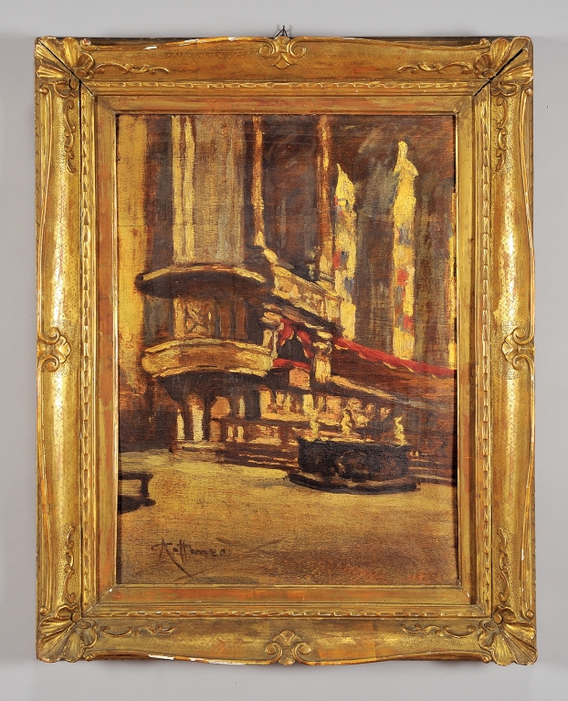 Precedente Lotto 1023 Successivo Aste Boetto - Via Mura dello Zerbino 10R, 16122 Genova Asta dipinti sec.XIX-XX Asta Dipinti sec.XIX-XX martedì 3 dicembre 2019 ore 18:00 (UTC +01:00) CATTANEO ACHILLE ACHILLE CATTANEO (1872-1931) Interno di chiesaolio cm.75.55f.to