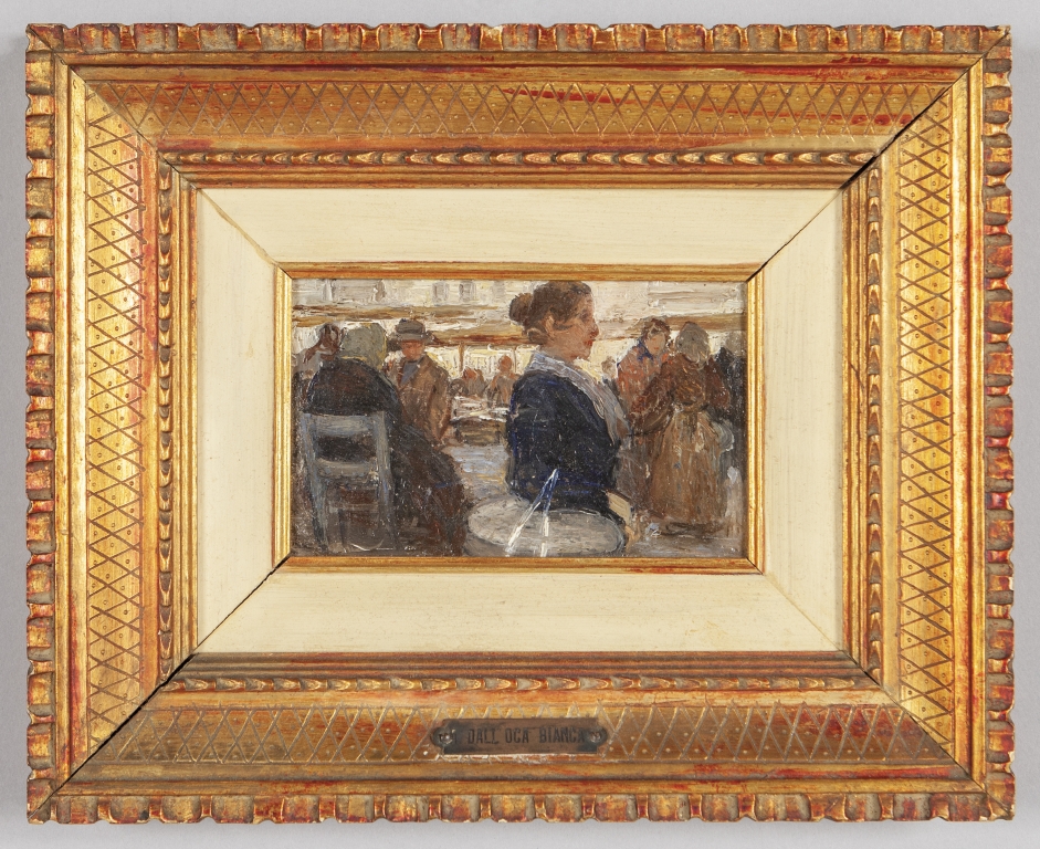 Scuola italiana sec.XIX (A.Dall'Oca Bianca ?) 'Al mercato' olio su tavoletta