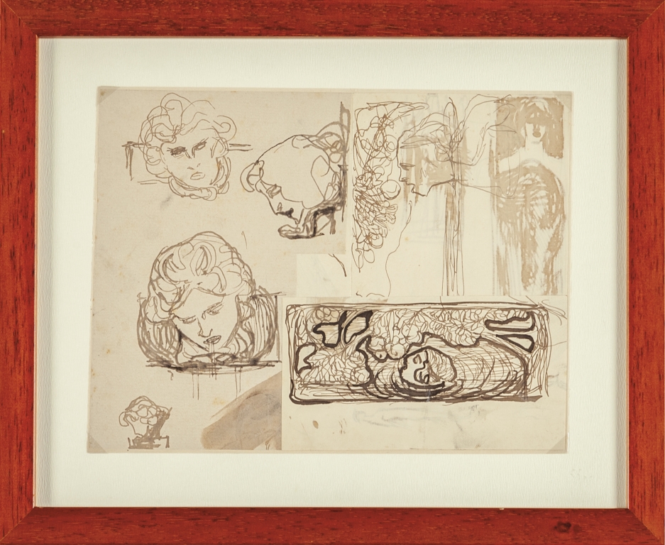 Teste di figure femminili e motivo decorativo