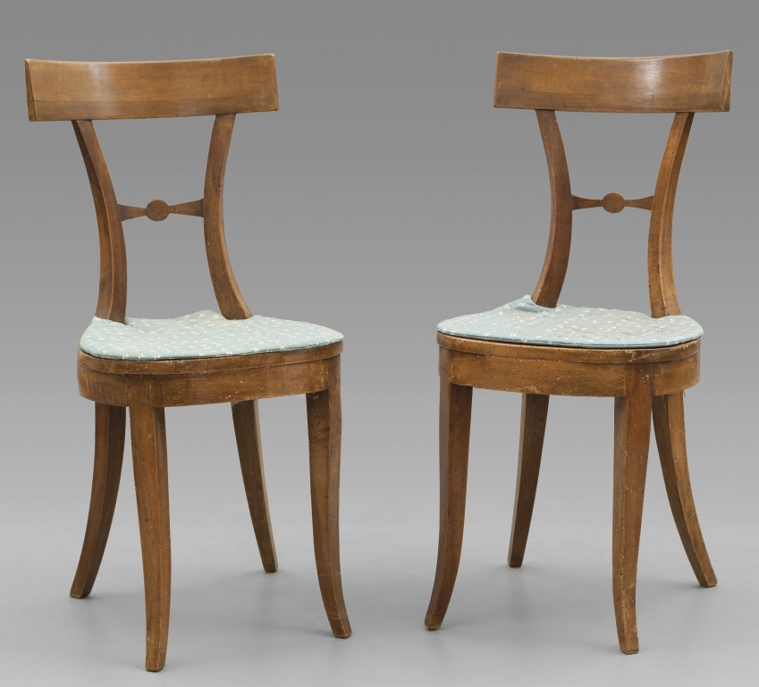 Coppia di sedie direttorio schienale con stecca e sedile rotondo sec. XIX