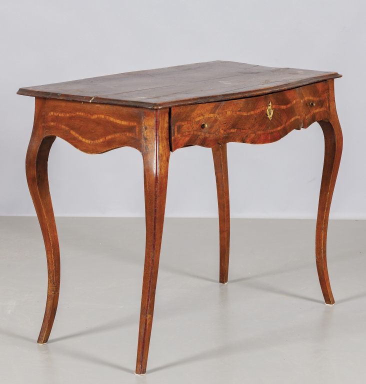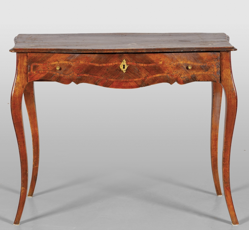 Consolina Luigi XV in noce cassetto sottopiano lastronato e filettato Genova metà sec.XVIII