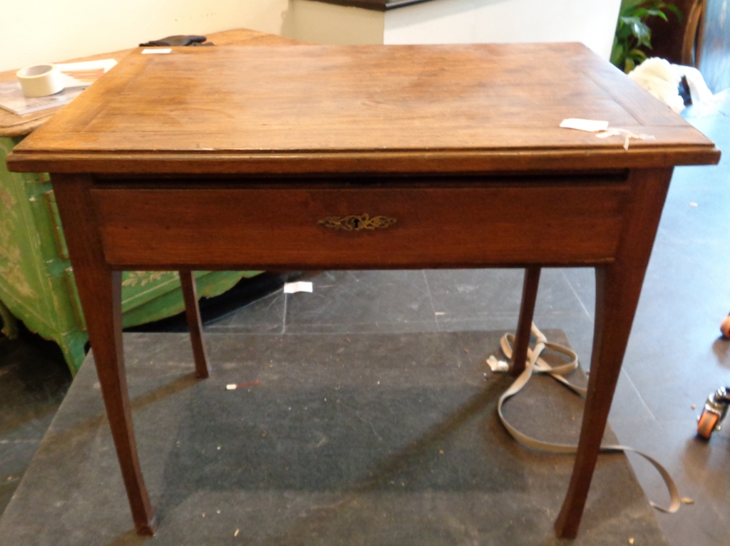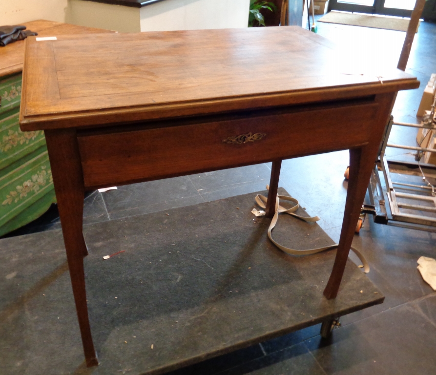 Tavolino Liberty piano apribile e cassettino nella fascia